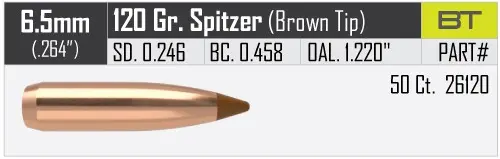 Střela Nosler Ballistic Tip Hunting 6,5mm, dia .264, 120grs (7,7g). SKU: 26120