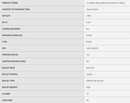 Střely Nosler Ballistic Tip Varmint jsou navrženy pro velmi vysoké úsťové rychlosti, jsou však velmi efektivní i při nízkých dopadových rychlostech.