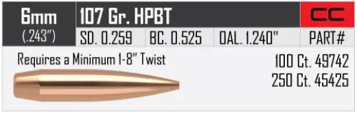 Střely Nosler Custom Competition 6mm, dia .243, 107grs