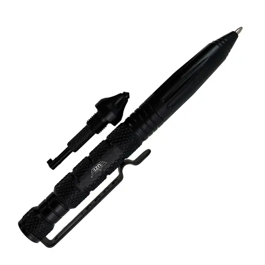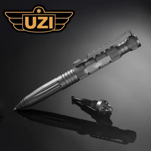 Taktické pero UZI Defender #6 s karbidovým rozbíječem skla, který poslouží i pro sebeobranu a integrovaným klíčem na pouta. Lehká a odolná konstrukce z leteckého hliníku s klipem na kapsu.