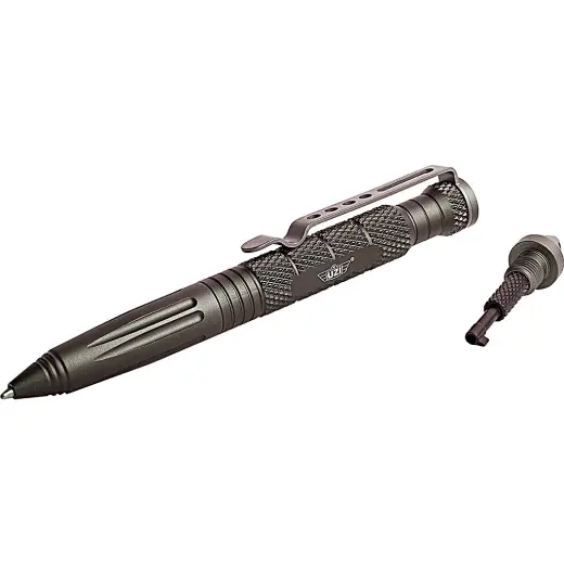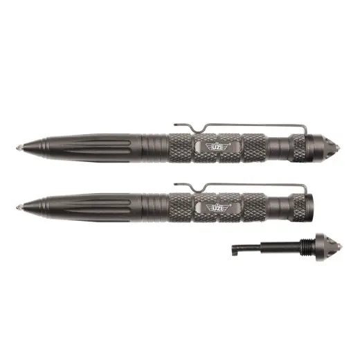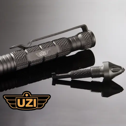 Taktické pero UZI Defender #6 s karbidovým rozbíječem skla, který poslouží i pro sebeobranu a integrovaným klíčem na pouta. Lehká a odolná konstrukce z leteckého hliníku s klipem na kapsu.